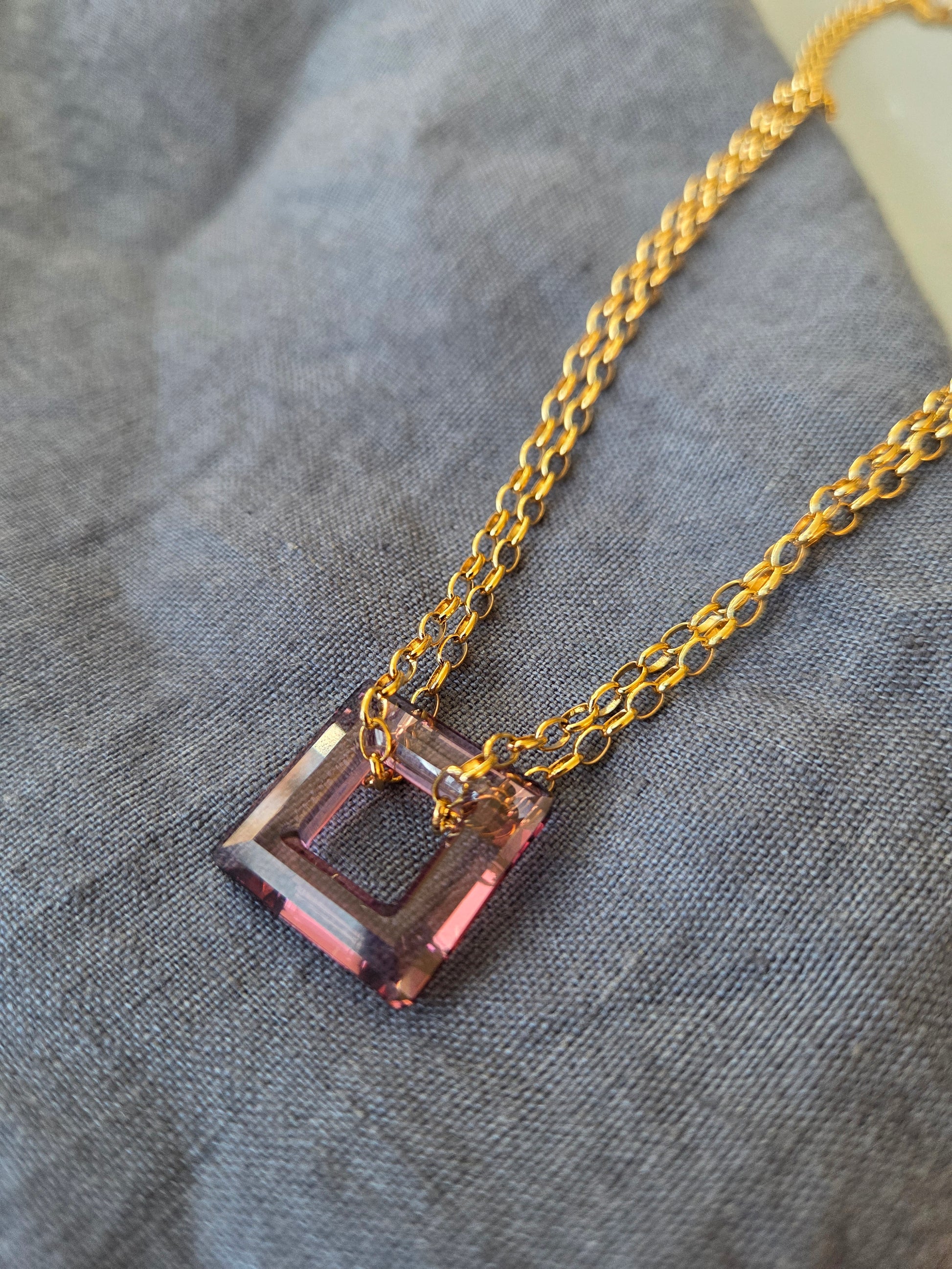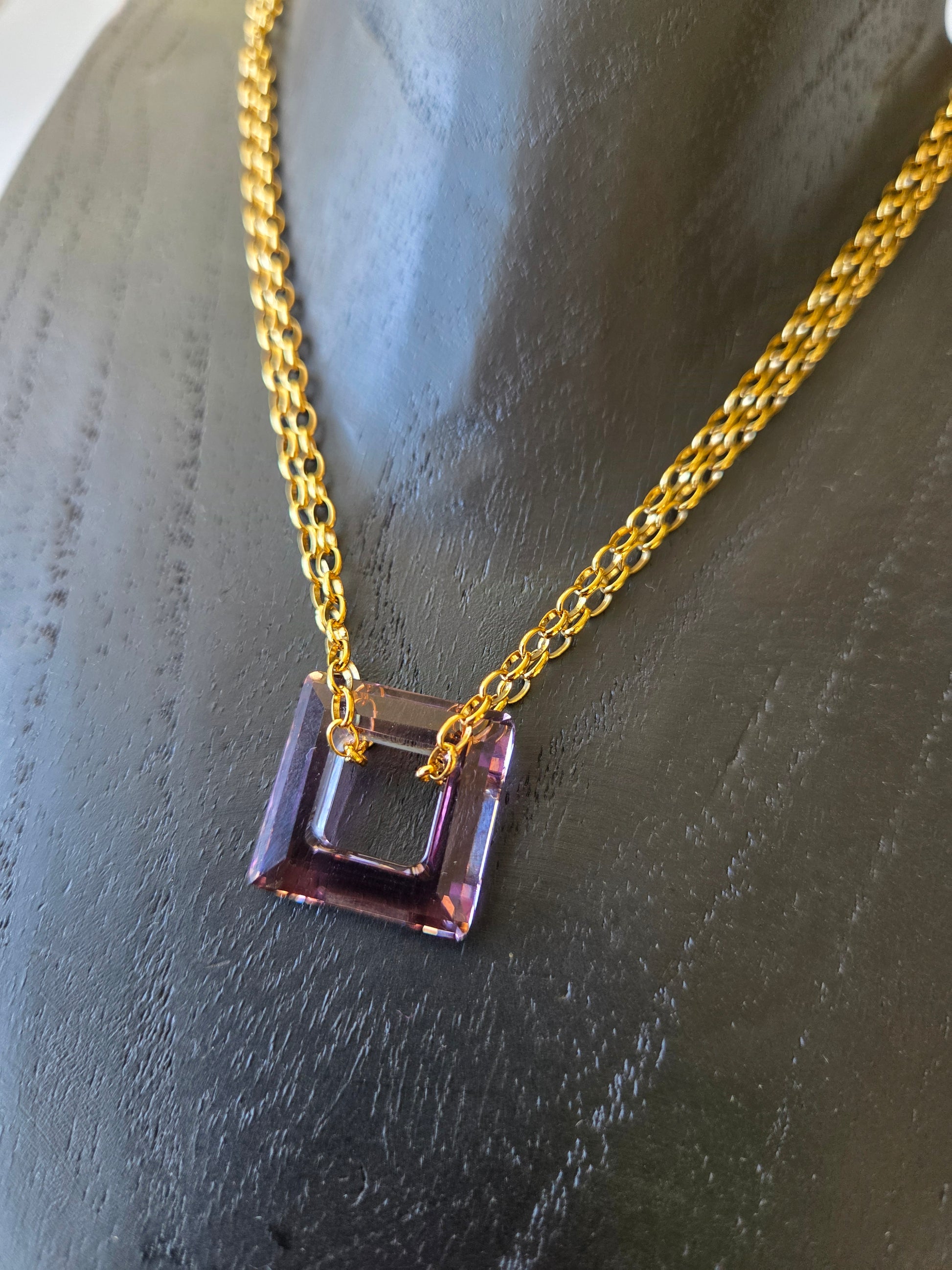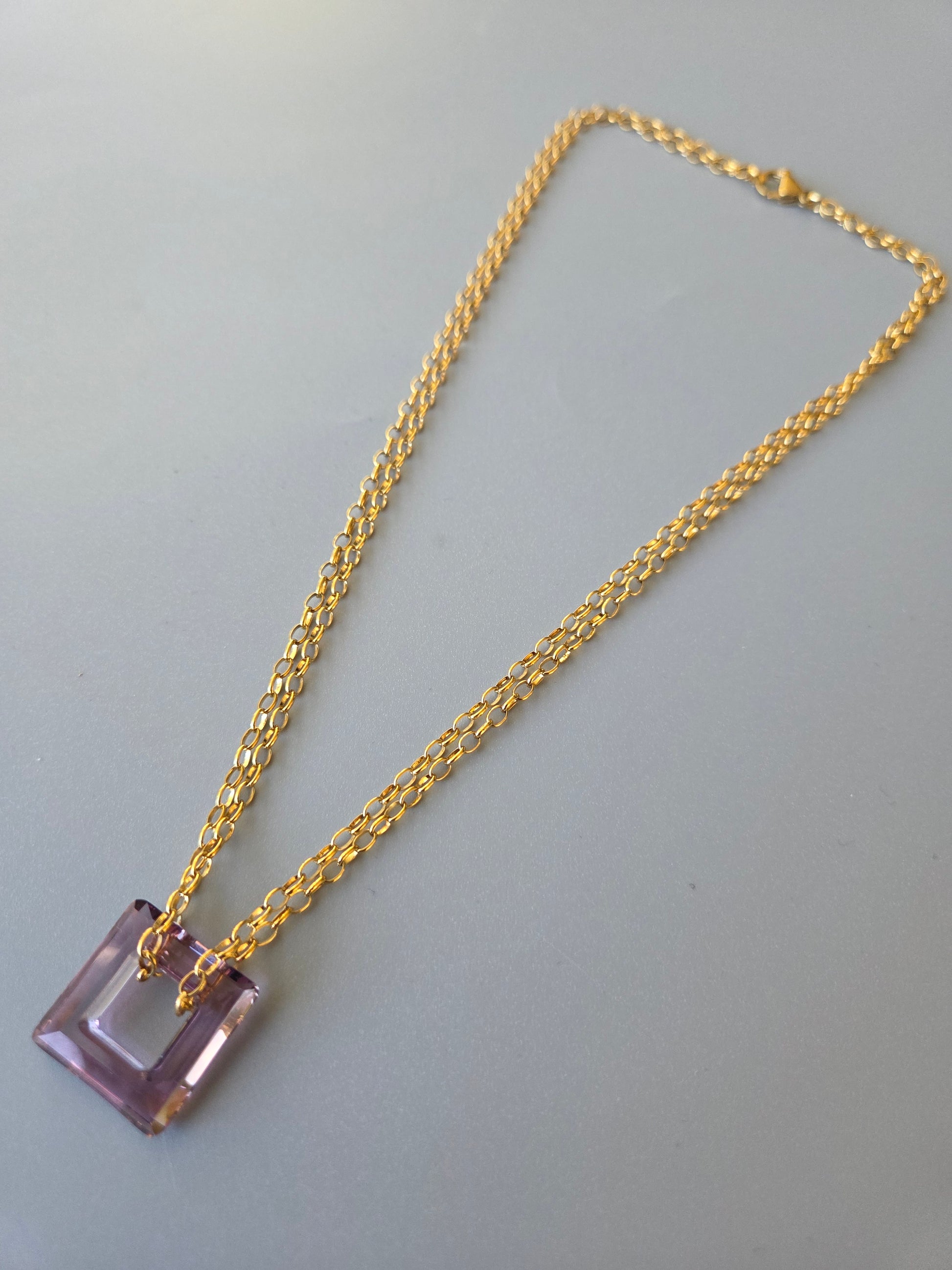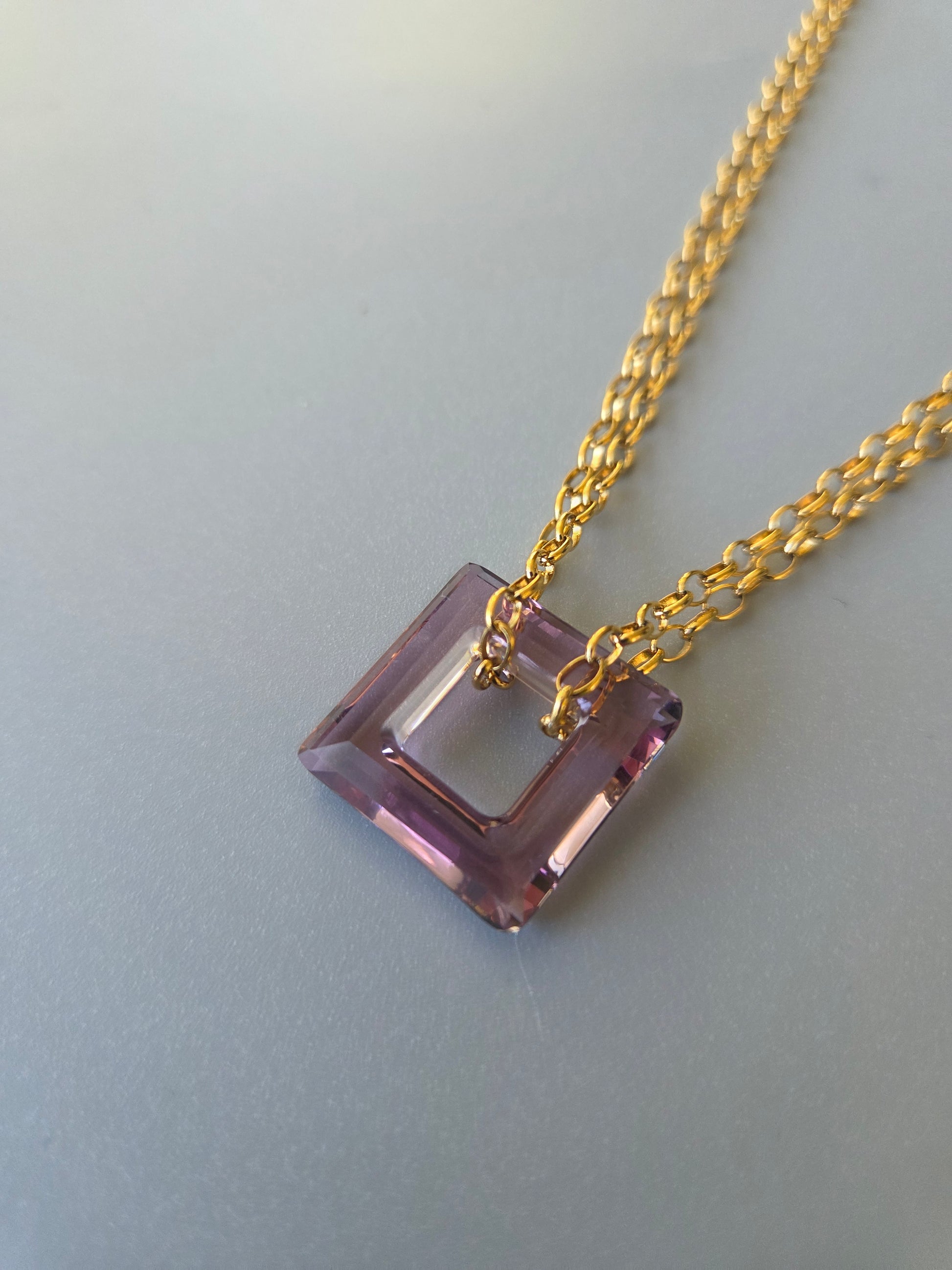 Le collier "Etna" est un vrai petit trésor tant par sa forme, sa pureté et surtout par sa couleur violine rosé. C'est un véritable élément en cristal.